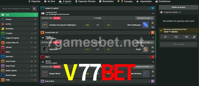 A aposta V77Bet oferece aos jogadores a experiência mais conveniente de apostas em eSports!
